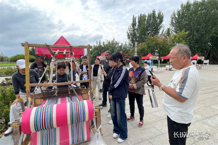 活动现场,不仅有织布技艺展示,工作人员还准备了彩色棉线与简易工具,让游客亲手体验“绕线”“打纬”等基础工序。据统计,“双节”期间该展示区累计接待游客超5000人次,成为连接非遗文化与大众记忆的“情感纽带”。
