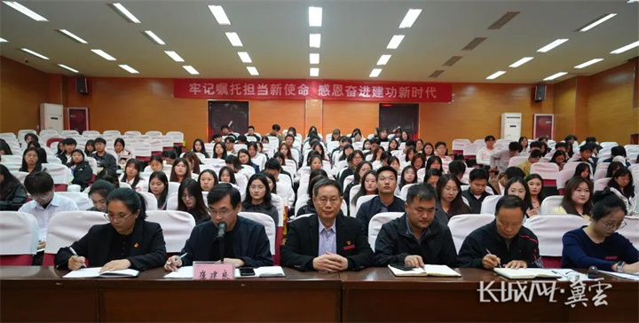 长城网·冀云客户端讯(通讯员 霍青青)为深入学习贯彻党的教育方针,引导学院党员干部、入党积极分子厚植家国情怀、明晰责任担当,扣好人生“第一粒扣子”,10月15日,邯郸应用技术职业学院在南校区报告厅隆重举行开学“第一堂党课”。学院党委书记郭建国主讲,学院党委委员、各党支部书记、党员代表及全体入党积极分子共计210人参加此次学习活动。活动由学院党委委员、党委办公室主任崔建良主持。