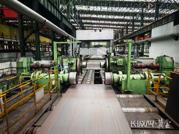 长城网·冀云客户端讯(张隽)火红的钢水通过高温加热后,铸成特厚钢坯,再经过轧辊的碾轧与变形,原本厚重的钢坯呈现出轻薄形态。近日,在河北普阳钢铁有限公司中板车间,全自动化中厚板生产线正开足马力高速运转,车间中控室内,高清大屏实时显示着生产线从加热温度、轧制压力到成品规格的各项数据。