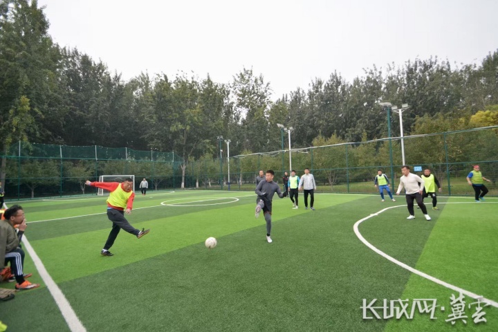 居民在邯郸市邯山区南湖体育主题公园踢足球。李昊 摄