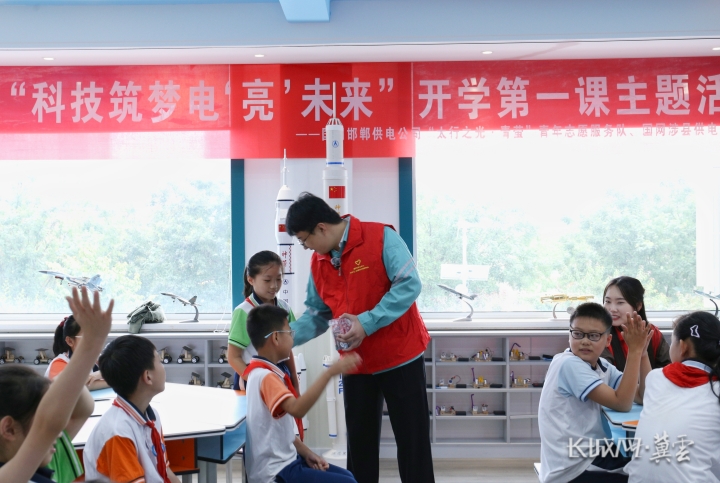 专业化科普队伍为项目注入专业力量。针对科普宣传的专业性、技术性要求,涉县公司主动邀请市、县科协领导进行现场指导,并以公司党员服务队队员为主体,由全国五一劳动奖章获得者王彦军带头,组建“党员先锋+青年骨干+科技专家”复合型团队,开发《电从哪儿来?》《北斗赋能电网》《一度电的旅程》等6大精品课程。2025年8月29日,开学前夕,党员服务队走进北关小学,一堂《科技筑梦 点‘亮’未来》的开学第一课,让土豆发电、手摇发电车的趣味实验,在孩子们眼前绽放科学光彩。问答里的思索,实验中的惊叹,都化作探索的种子埋进童心,静待他们长大后,以科技为翼,奔赴科技强国的山海。截至目前,团队已开展进校园活动42场次,覆盖师生超2500余人次。