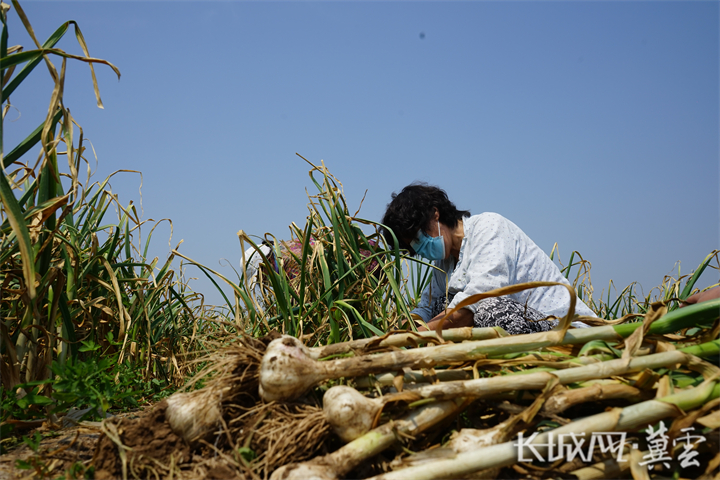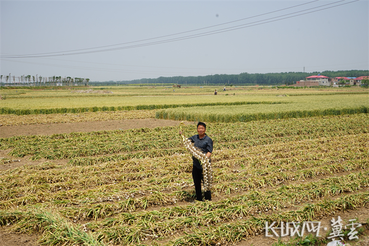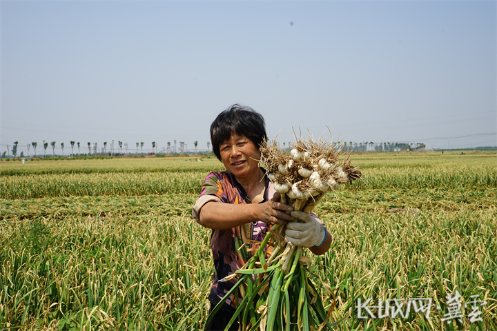 在南吕固乡邵庄村,260多亩大蒜也进入集中收获时期,村民贾永志蹲在田里一边收大蒜一边乐滋滋地说道,“每年到这个时候,就会有收购大户来村里收大蒜,我们根本不愁卖。”他家共承包了5亩地,年收入三万多元。