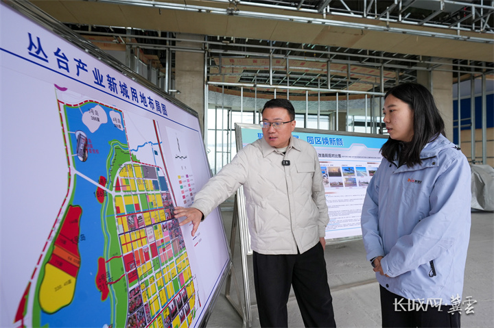 邯郸丛台产业新城管委会副主任张翔介绍产业新城项目。长城网·冀云客户端记者 孟维仑 摄