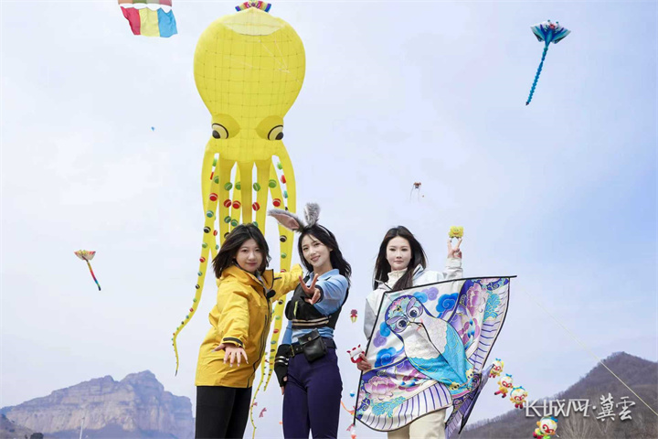东太行:风筝竞技点亮山巅。作为春日活动的重点板块,“筝东风·上太行”风筝户外生活节正在东太行景区举行。活动期间,邯郸征服运动风筝队的专业队员进行四线运动风筝编队表演,在太行山上空精准拼出“东太行”字样,吸引众多游客驻足观赏。巨型软体风筝、滚地龙风筝等特色风筝相继升空,与丹崖赤壁的太行山景构成视觉焦点。