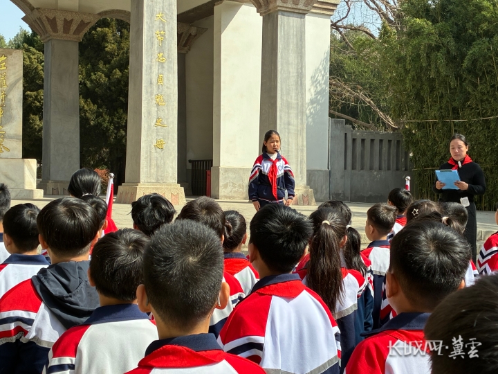 邯山区阳光实验小学学生在晋冀鲁豫烈士陵园举行“缅怀革命先烈 汲取奋进力量”主题队会活动。通讯员 王夏鑫 摄